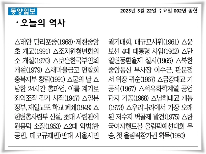 동양일보 뉴스(3월 22일 오늘의 이야기) 2023년 03월 22일 by issue '추천 관련글, 오늘 주식 종목 추천 [ 더존비즈온2023년 4월 15일 토요일 운세 바로가기2023년 03월 27일 오늘의 별자리 운세[메트렉스 병원] 그냥 예쁜 마음 29회 - '부모님께 편지로 마음을 전하자'