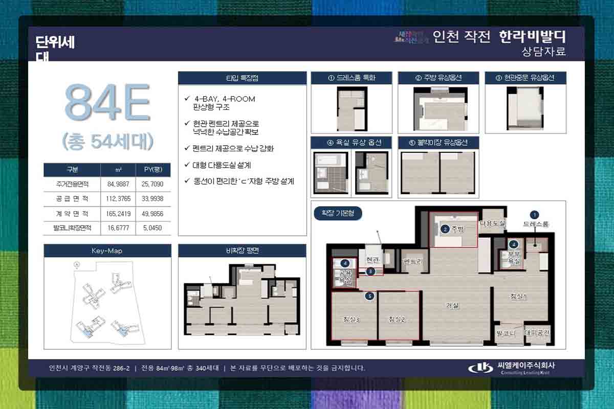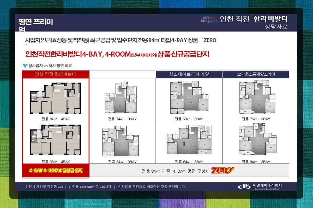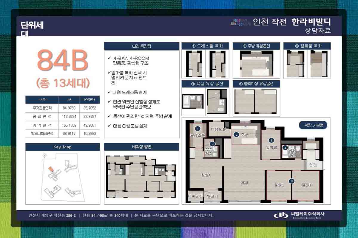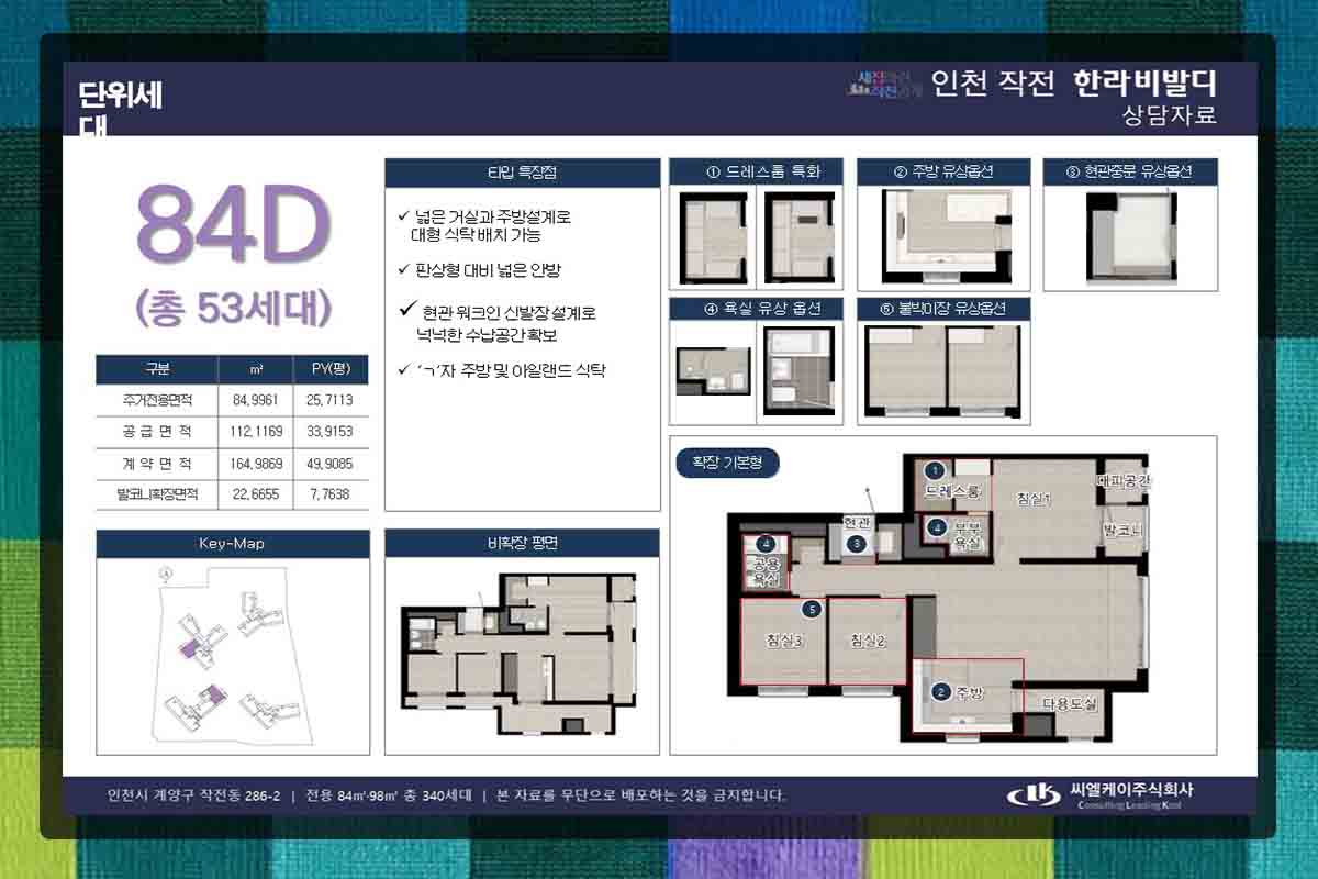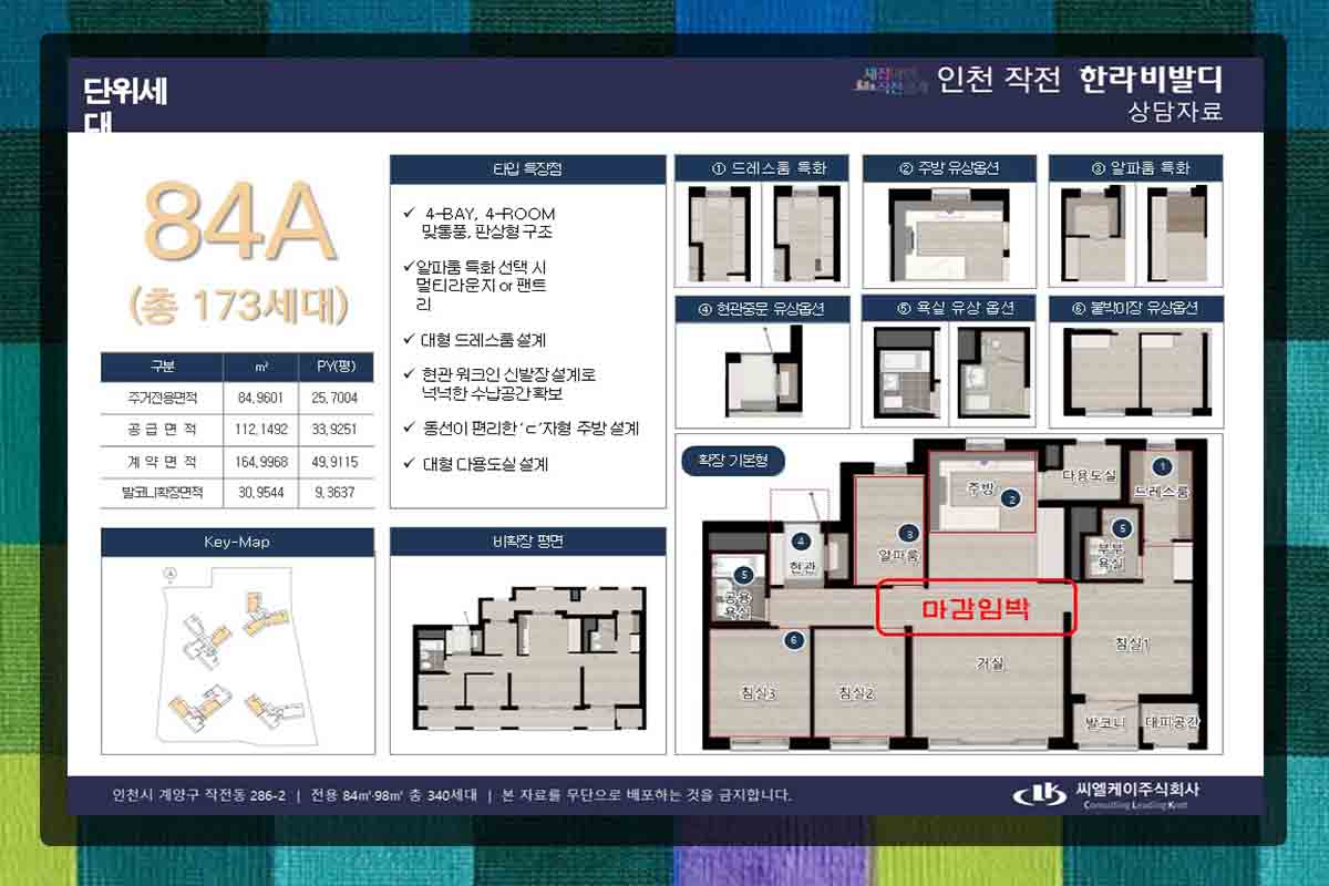 84형부터 E형까지 종류가 다양하여 구성이 매우 다양하며 그 중 대표적인 것이 84A형으로 173가구이며 위치는 작작역 일대에서 도보권에 있고 인근에 서운체육공원과 작전공원이 있습니다. 경인고속도로는 홈플러스 사거리로 바로 이용이 가능하여 서울, 경기도 출퇴근에 편리합니다.