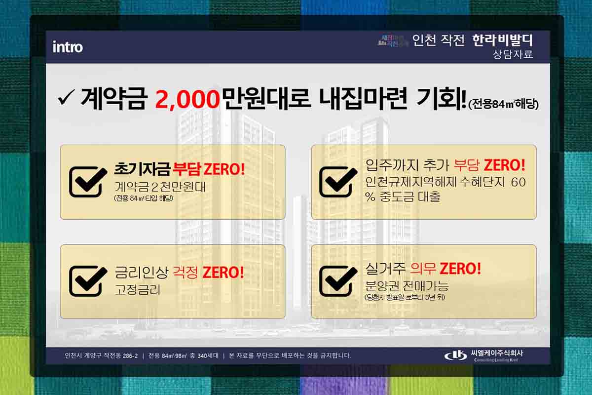 인천작전 한라비발디가 역세권과의 접근성이 좋은 작전동 중심가 아파트로 분양을 시작했습니다. 단지는 2023년 10월 이후 전매가 가능해 부담 없이 입주가 가능하며, 고정금리 보장제와 5% 보증금 일시금 제도 시행으로 입주자의 부담도 대폭 줄였다.